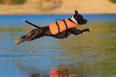 Once you've picked out a life jacket, the U.S. Coast Guard recommends having your dog first test it out in shallow water while under close supervision, and with a leash or harness clipped on, just in case.