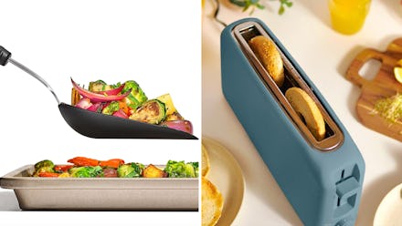 With tapered side walls, a low-profile bottom, and an extra-wide head, this scooping spoon can grab a ton of veggies, potatoes, and more off your sheet pan and make sure it all stays put when you transfer it to a serving dish. It’s made of heat-resistant nylon and features an ergonomic rubber handle for easy maneuvering.