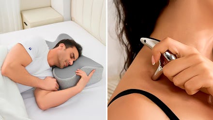 With a unique flower-like shape, this ergonomic neck pillow is meant to help prevent and minimize neck and shoulder discomfort when lounging or sleeping. The memory foam and contoured design allows the pillow to adapt to your head and neck, the height is adjustable so it can even be used for side sleepers, and the moisture-wicking case has a cooling feel – plus, it can be removed for easy cleaning.
