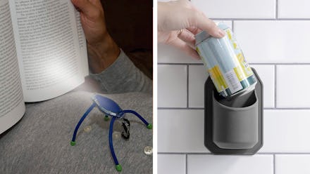Eliminate that shampoo, body wash, and shampoo chaos in the shower by peel-and-stick installing this adhesive shower caddy to create a place for everything. The two roomy shelves let water drain through the steel grates so there’s no mildew. And four movable hooks hold scrubbers and loofahs. There is so much space, you could probably add a few plants to cheer up your morning ablutions.