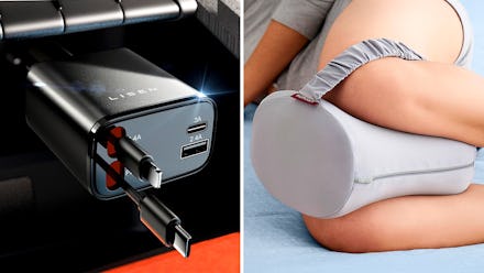 This supportive pillow slips between your knees when you’re sleeping on your side to help realign your spine for more restful sleep. It’s made of ultra-comfortable memory foam with a long and stretchy strap that helps it stay in place between your knees all night long. Toss and turn away.