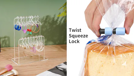 Keeping track of a jewelry collection is an organizational challenge. This earring organizer stand is designed after a system that is well-known to work for clothing. It uses tiny coat hangers and a hanging bar to keep everything organized yet easy to see and sort through. The two bars are in two heights to accommodate long earrings and shorter ones. “Adorable!” wrote one reviewer. “And it keeps my earrings organized and easy to see.” It comes in five colors.