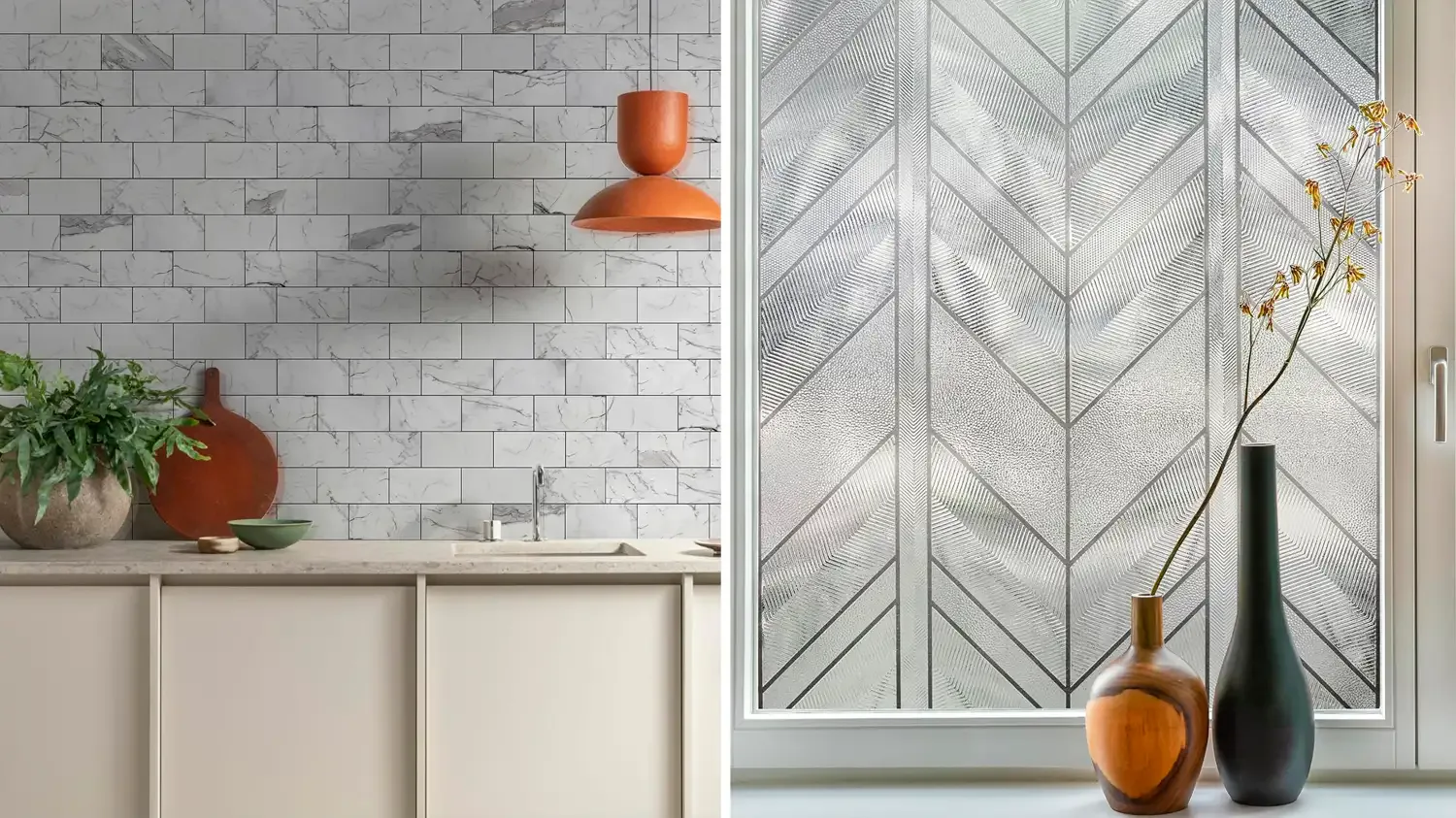 With its chevron pattern, this window film transforms an otherwise plain window and can hide a less-than-desirable view. However, it’s also functional; it creates privacy and offers UV protection, all while allowing some light to come into the room. It goes up via static cling — no adhesives here.