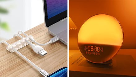 Alarm clocks often wake you up with a harsh sound. This sunrise alarm clock wakes you up with gentle light that mimics the sunrise and natural sounds like birds or a stream. The clock can also be used as a nightlight and it has a USB port in the back so you can charge your phone while you sleep.