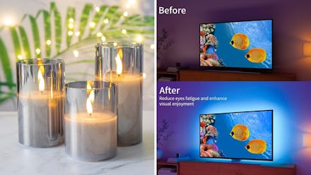 These LED light strips make the TV you have look so much better. Peel and stick them to the back of the screen and use the app to set the color and brightness. They throw light at the wall behind your screen, creating terrific ambient light while reducing the contrast so your eyes see the colors and blacks more clearly.